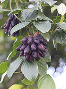 解説:海岸林や低地林の林縁に生育するつる性の常緑木本。 葉は3枚の小葉をつける。 花は紫色で、2〜3月に開花する。 和名は台湾の火焼島に由来する。