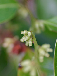 解説:低地〜低山地や二次林に生育する常緑小高木。