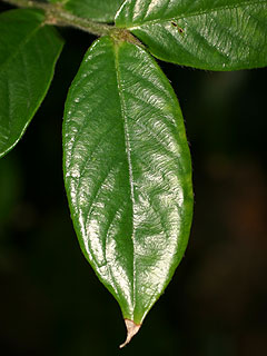 解説:林内に生育する常緑低木。葉の脇に数個の白色の花をつける。開花は11〜4月。実は12〜1月頃に青色に熟する。 八重山諸島にはルリミノキ属が7種分布する。近縁種との識別→