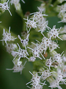 散房花序に白色の花を多数つける。ほぼ年間を通じて開花する。