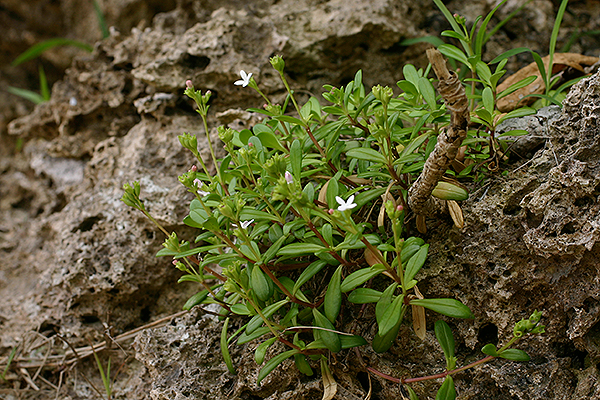 海岸の岩場に生育する多年生草本。茎は地面を這って広がる。
