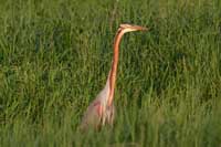 図鑑などには森林性とあります。確かに森林性ですが、比較的開けた集落の中にも出てきます。近縁のミゾゴイに比べ、少し開けたところを好むようです。私の住んでいる集落では、朝夕、集落内の道路を歩いている姿をよく見かけます。[戻る]